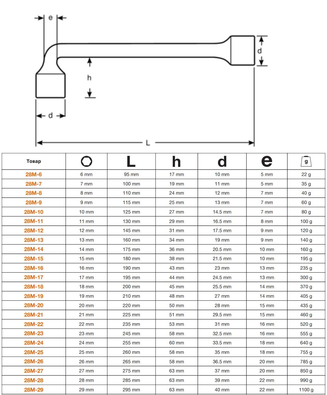 Ключ BAHCO двосторонній торцевий вигнутий 25 мм; L=260 мм; ISO 2236 (28M-25)
