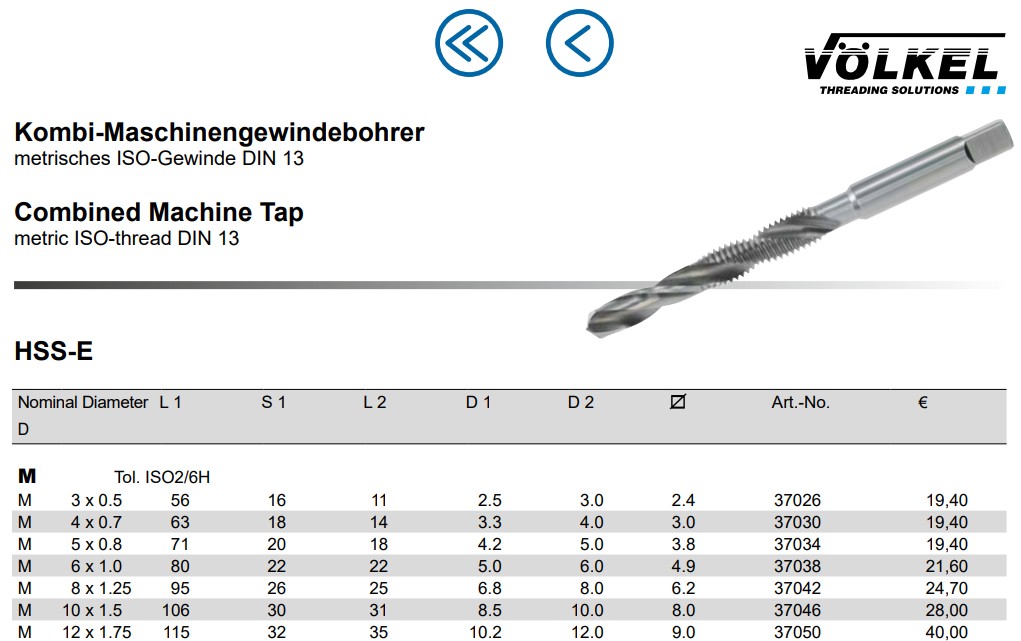 Мітчик VOLKEL комбінований M10x1,5 (37046)