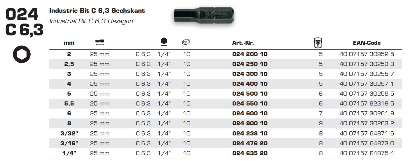 Біта FELO SW 2,5х25 мм INDUSTRIAL (02425010)